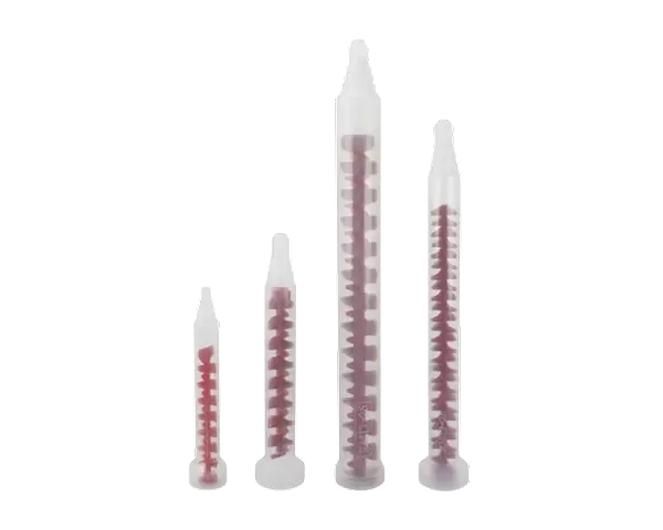 2成分接着剤(2Kエポキシ、ポリウレタン、アクリル系)では、完全な重合を実現するために、正確な流量比と完璧な混合が求められます。RMミキサーとRSミキサーは、工業用ディスペンシングシステムで広く使用されています。